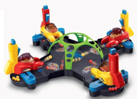 Juego de habilidad que recrea una partida de pinball como las de las videoconsolas pero en la vida real. Pueden jugar hasta 4 jugadores simultáneamente. (También es posible jugar 2 jugadores colocando las barras de limitación de campo). Incluye dos mandos donde podrás almacenar tus bolas y lanzarlas cuando quieras. Mueve de izquierda a derecha para proteger tu portería y utiliza los gatillos para marcar goles a tus rivales.