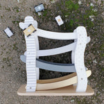 Deje que los autos vayan en la parte superior de la pista y vea cómo corren rápidamente hacia abajo. Una pista de carreras estimulante y entretenida que mantiene a su hijo activo durante mucho tiempo.