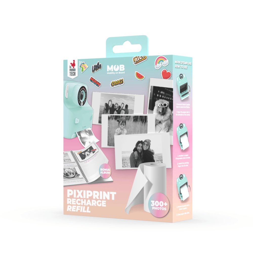 Si te quedas sin rodillos para tu Pixiprint, no te preocupes, ¡tenemos la solución! Te ofrecemos recambios para imprimir hasta 300 fotos, ¡así como un álbum de fotos para personalizar con tus propias fotos y pegatinas! Nuestro kit de recambios creativos incluye: 3 rollos estándar 1 rollo autoadhesivo para pegar tus fotos en cualquier sitio 1 álbum de fotos para personalizar Una vez que hayas hecho tu foto, ¡sólo tienes que personalizarla y pegarla en tu álbum! Utiliza las pegatinas o aplícalas directamente con el papel autoadhesivo. El álbum se despliega como un acordeón para mayor comodidad y puede colocarse en posición vertical sobre un escritorio o una mesilla de noche, para tener siempre a mano a sus seres queridos.