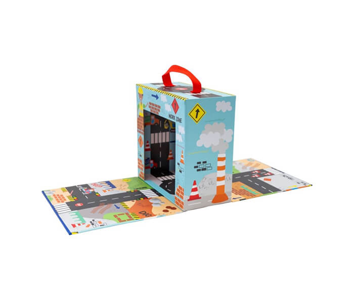 Baje las tapas para jugar con las piezas en la fresca área de construcción con techo, arco y caminos. Podrás pasar horas de diversión dirigiendo la obra, moviendo las excavadoras y los materiales de construcción a través del arco, todo para terminar el trabajo antes de la pausa para el té. Es completamente portátil con un asa de transporte genial si quieres llevárselo a tus amigos y ¡todo se guarda súper rápido!