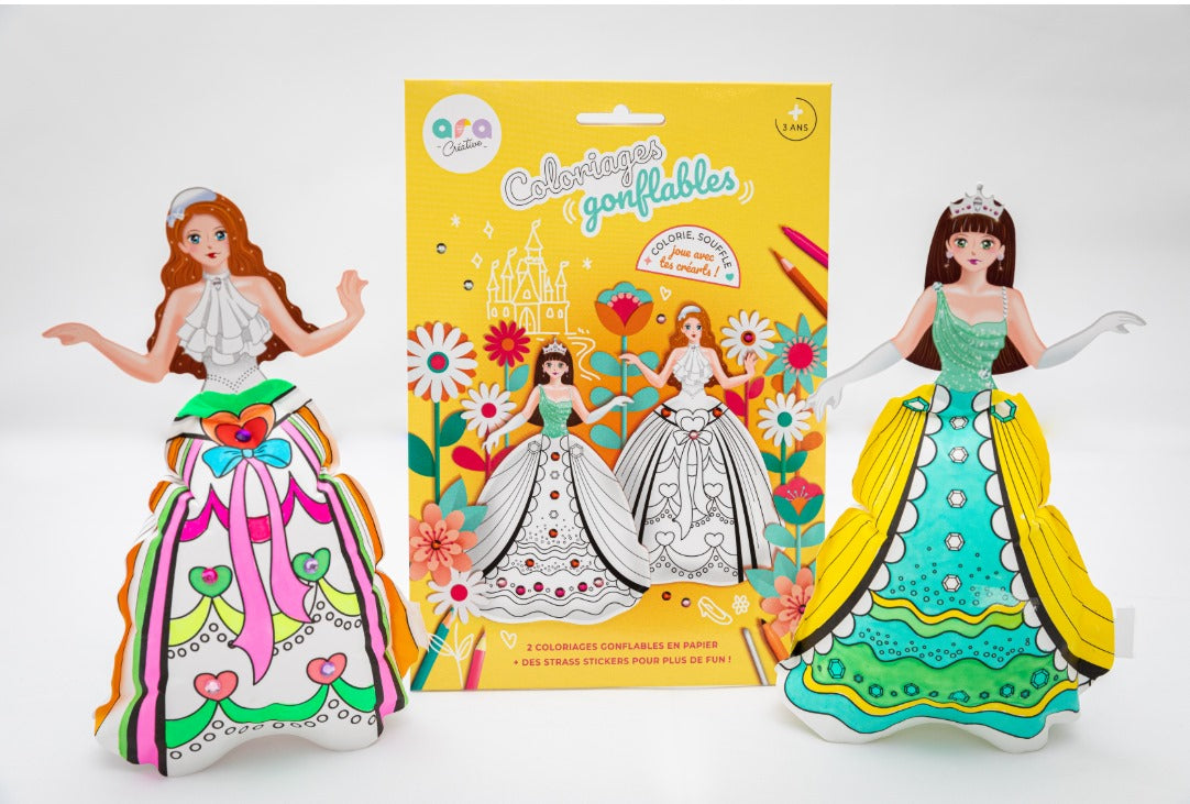 Contiene 2 inflables de princesas + pegatinas brillantes