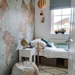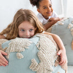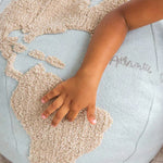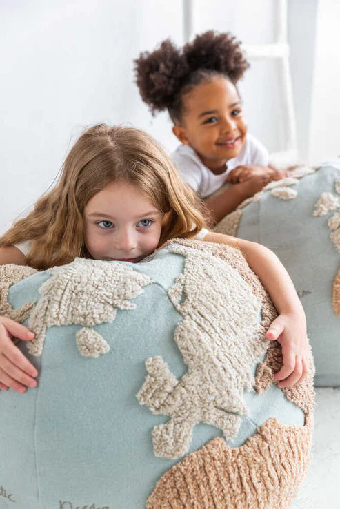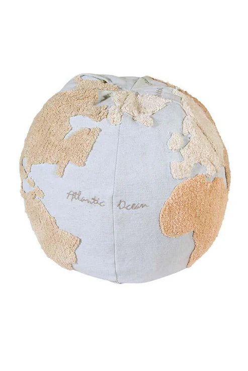 ¡Un globo terráqueo convertido en puff para decorar, jugar y aprender! Los niños pueden explorar el mapamundi mientras se apoyan en él o encontrar un lugar donde subirse y ¡poner el mundo a sus pies!