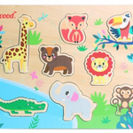 El puzle de animales de la jungla es un juguete educativo e interactivo basado en los elementos de la jungla. En el puzle, hay un león, un elefante, un cocodrilo, una jirafa, un mono, un zorro y un tucán que juegan contentos entre ellos. Los niños podrán reconocer las características de cada animal e insertarlos en su correspondiente hueco. Este juego puede ayudar a mejorar el sentido del espacio de su hijo. Además, mientras juega desarrollará su reconocimiento visual y la imaginación. Fabricado con madera de excelente calidad.