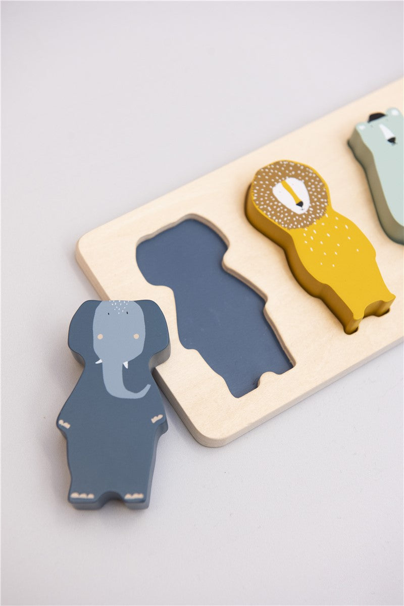 ¡Conoce a nuestros amigos animales insertandolos en el lugar correcto! Las piezas del puzzle son gruesas, por lo que son fáciles de manejar para los más pequeños. ¡Tambien se pueden utilizar de forma individual, lo que los convierte en figuras geniales para horas de juego de simulación!