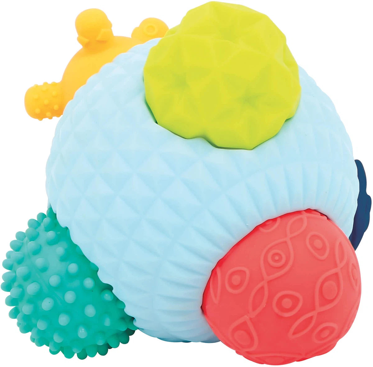 El juego contiene 5 pequeñas bolas sensoriales que no solo tienen un color diferente, sino que también se sienten diferentes. 5 bolitas, fáciles de agarrar para el bebé, que caben en una gran bola que las mantiene todas juntas. A los niños les encanta sacar las bolitas de la grande y luego encontrar a dónde van cada una. ¡Asegúrate de que los patrones coincidan!
