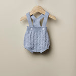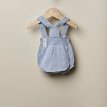 Ranita con tirantes tejido en malla fina de algodón orgánico suave y transpirable, ideal para bebés recién nacidos, niños y niñas. Se abrocha en la parte delantera en los tirantes con botones de nácar. Una sola pieza sin costuras, para el máximo confort de tu bebé.