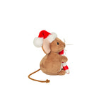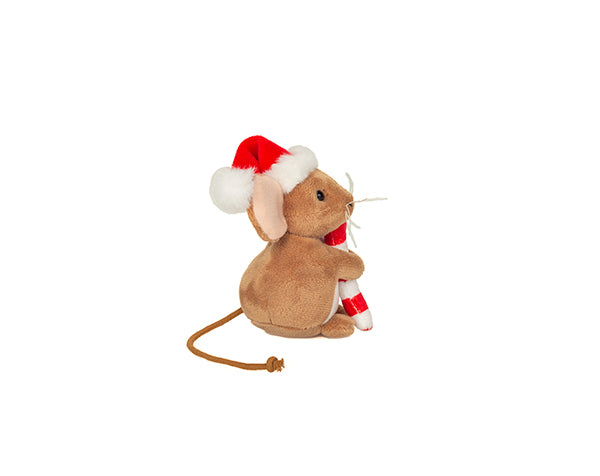 ¡Este pequeño ratón navideño está deseando pasar un rato contemplativo contigo! Con su aterciopelado pelaje marrón, sus ojos saltones negros, su bastón de caramelo festivo en sus manitas y su gorro de Papá Noel, es perfecto para jugar y acurrucarse.