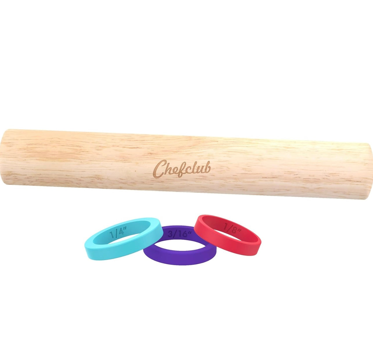 Materiales de calidad: Los 3 juegos de aros para gestionar el espesor de la masa están fabricados en silicona. El rodillo está fabricado en madera de Hevea, un material de calidad conocido por su durabilidad y que garantiza adaptabilidad a la prueba de las cocinas más agitadas.