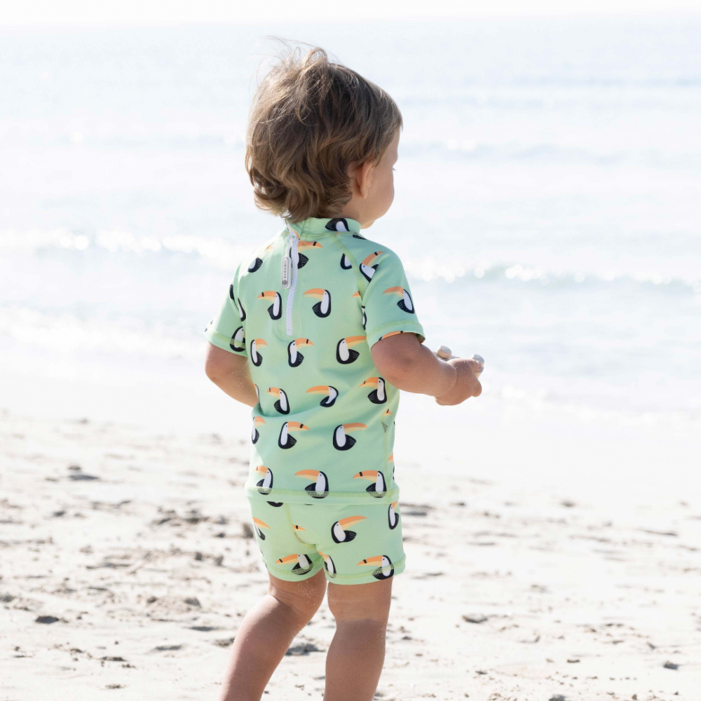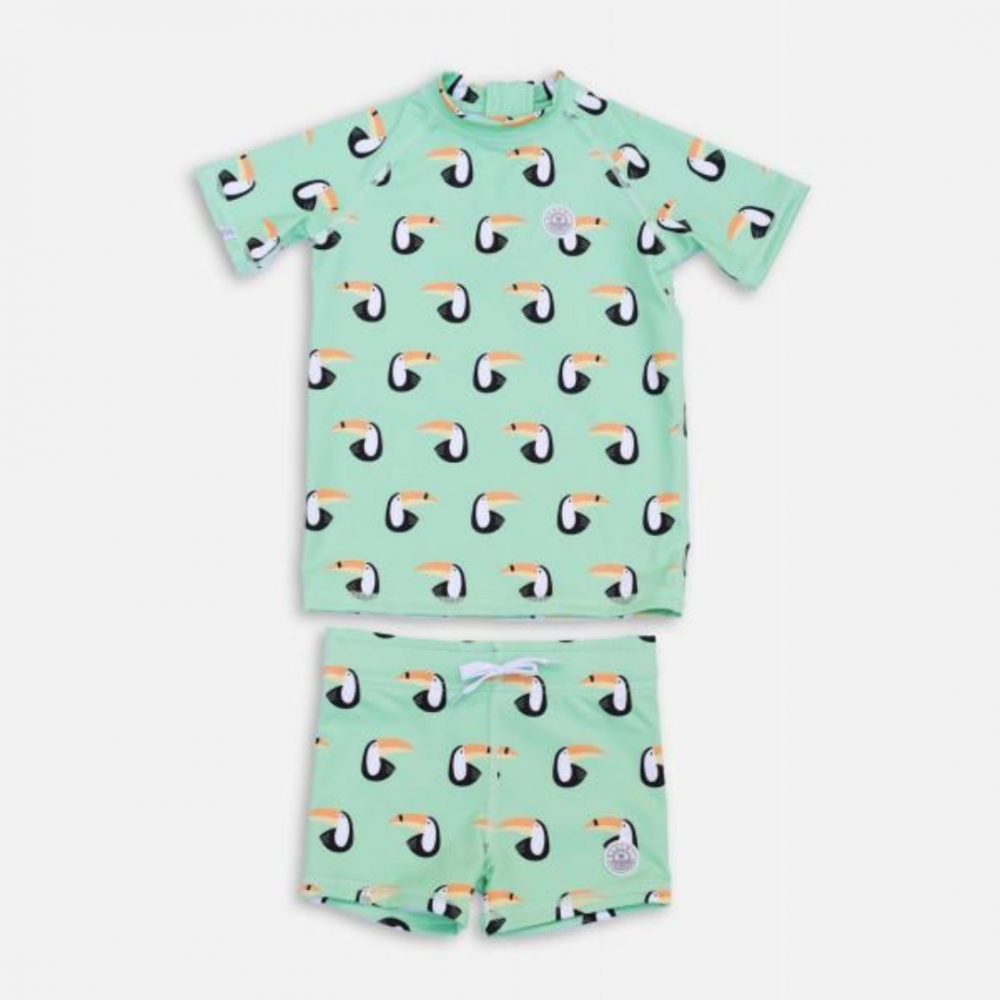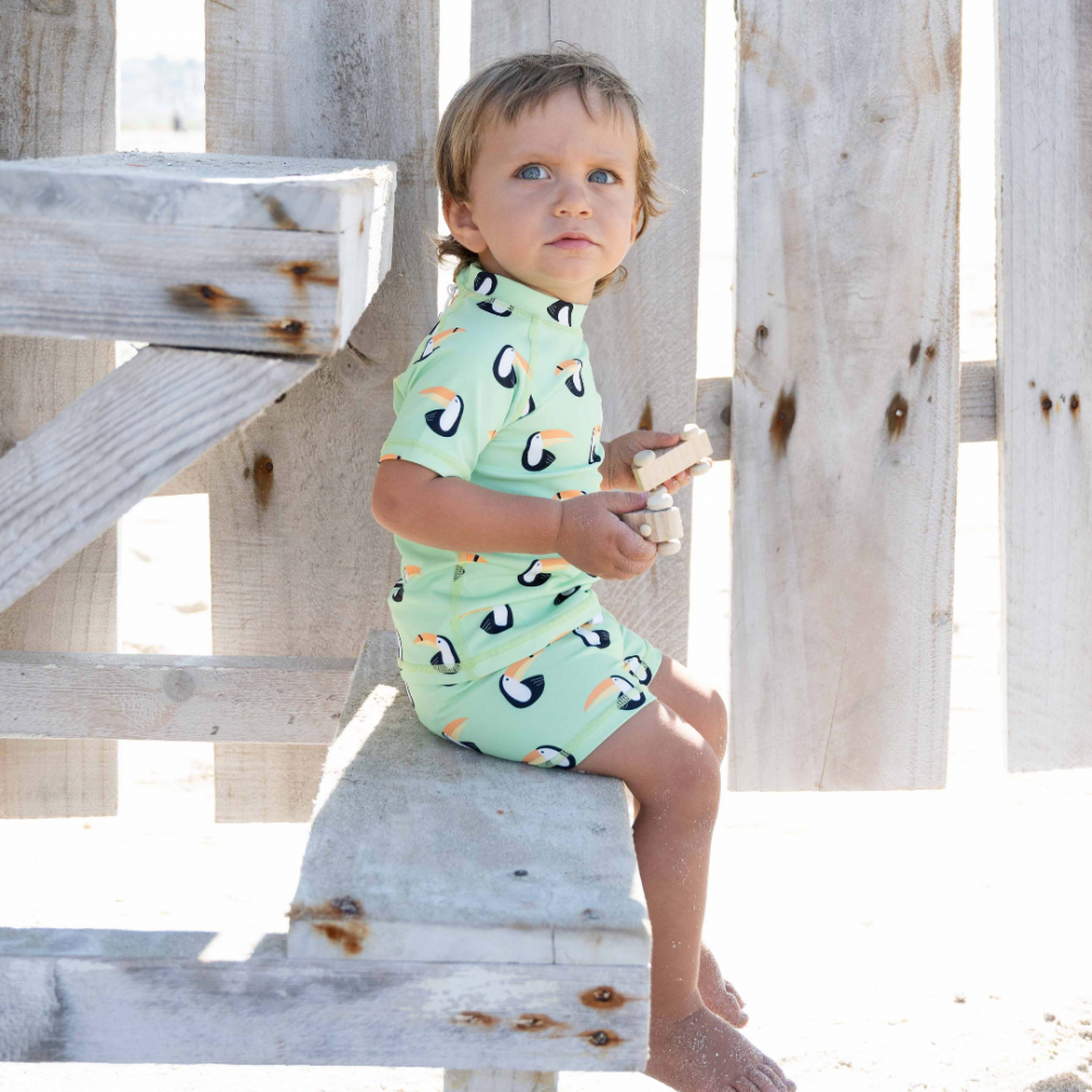 Diseñados para brindar una protección solar y comodidad superiores, nuestros conjuntos de 2 piezas para niños están confeccionados con telas livianas de secado rápido hechas con materiales reciclados de la más alta calidad e incluyen una remera UV de manga corta con cierre y un short de baño súper elástico para aquellos que desean una opción más flexible.