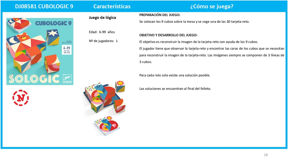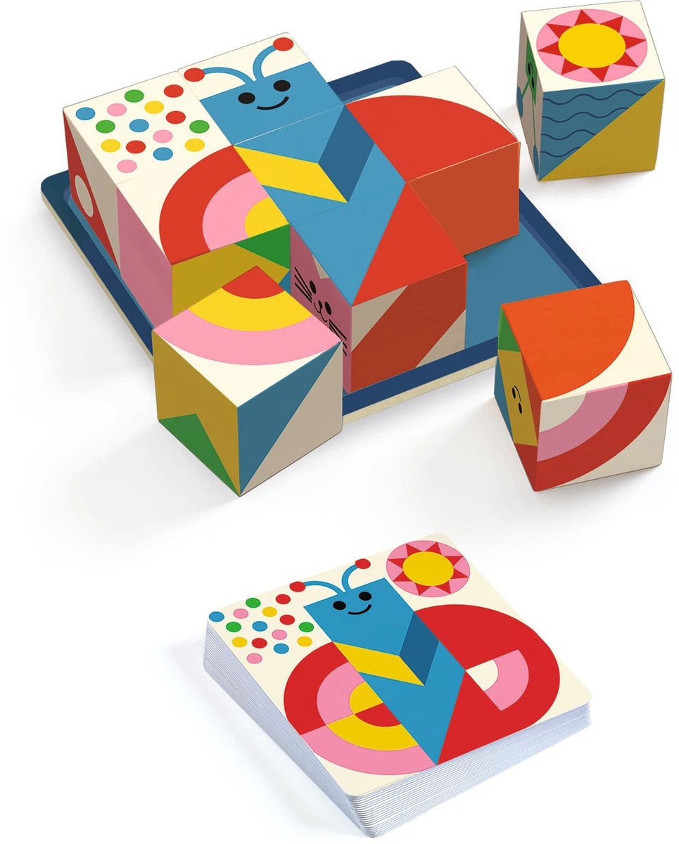-Un juego de paciencia y observación. ¡Reconstruye a la perfección la imagen de la carta de desafío con los 9 cubos!