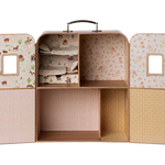 Bienvenidos a SuitCasa: una pequeña casa portátil. Su tamaño es apto para los hermanos ratón pequeños. Se incluyen 2 juegos de ropa de cama suave para tus amigos, pero puedes comprar otros muebles pequeños para decorar la casa.