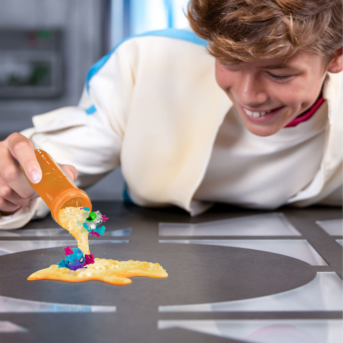 ¡Crea tus propios enjambres con MrBeast! Agrega agua al tubo de ensayo, agítalo y revela dos personajes coleccionables de MrBeast. Con más de 100 microbestias únicas, cada uno pertenece a equipos como Home Horrors o Techno Terrors. ¡Colecciona y vive la emoción de experimentar con MrBeast!
