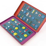 Clásico juego de bingo, ahora en un formato especial en caja de lata, ideal para llevar a cualquier parte y jugar mientras estamos de viaje en el coche. El objetivo de este juego es lograr ser el primero completar 2 líneas horizontales o 1 vertical. Para ello, mientras estamos en ruta debemos ir fijándonos lo vemos por la ventana y ser rápido en localizar los distintos elemetos representados en la cruadrícula. Un divertido juego para dos jugadores con el que trabajar la observación, la atención y la rapidez, al tiempo que permite divertirse en los trayectos por carretera. La caja sirve de tablero de juego y las instrucciones están impresas en la misma.