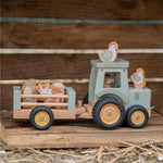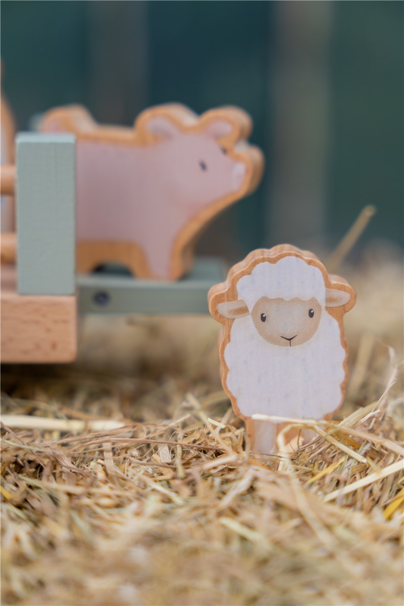 | Vroom vroom, here comes the tractor with all the animals! Super fun toy to stimulate your little one's imagination. In addition to the animals, you will also find two bottles of milk in the trailer. Take everything to the farm and your task will be complete. Everything is made of wood, so it can last a long time. |