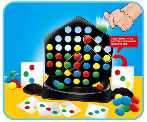 Juego para 2 jugadores del 3 en raya pero con un formato totalmente renovado. Los niños pondrán a prueba toda su concentración y agudeza visual para recrear el patrón de su carta sobre el soporte de juego. El primer jugador que lo consiga se convertirá en ganador.