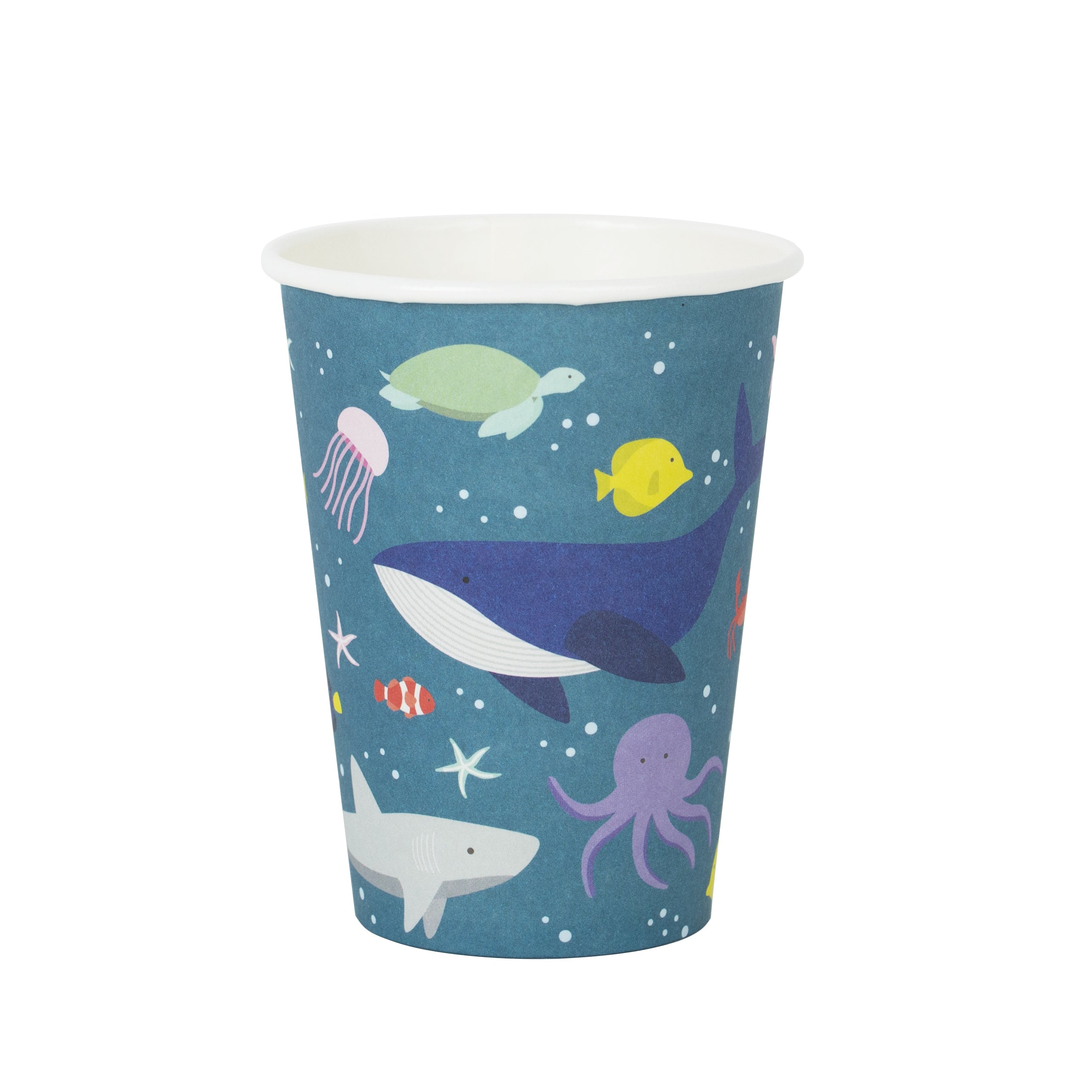 Set de 8 vasos de papel con un original estampado de animales marinos. ¡Ideal para montar una fiesta preciosa! Dale un toque único y especial a tus fiestas.