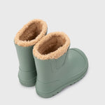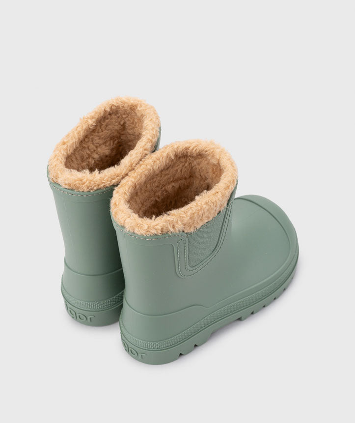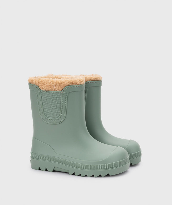 Botín de agua monocolor en acabado mate y forro de borreguito de concepto barefoot wide, con la puntera más ancha, cero drop, flexible, blandito y con plantilla extraíble.