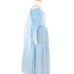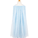 El disfraz se completa con una capa estampada con cristales brillantes para un look inspirado en una princesa de la nieve que dejará a todos maravillados.
