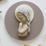 Nuestras virgencitas son un detalle especial y único a la hora de decorar la habitación de los pequeños de la casa. Las hacemos a mano, con mimo, de ahí su acabado lleno de detalles. No hay dos iguales, cada una de ellas habla por sí sola de la dedicación que les ponemos. Buscamos la combinación perfecta de materiales, colores y texturas para conseguir un objeto delicado, artesanal y capaz de transmitir el amor, la ternura y la protección de la maternidad