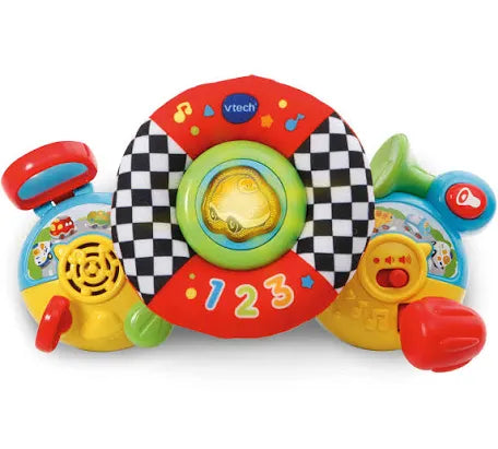 Fantástico volante para que los más pequeños jueguen a conducir, igual que lo hacen papa y mama.¡ Conduce aprendiendo con el Volante de Paseo de Vtech!. ¡ Colores brillantes, dibujos divertidos, formas adaptadas perfectamente a las manos del niño, todo listo para que el paseo sea inolvidable!.