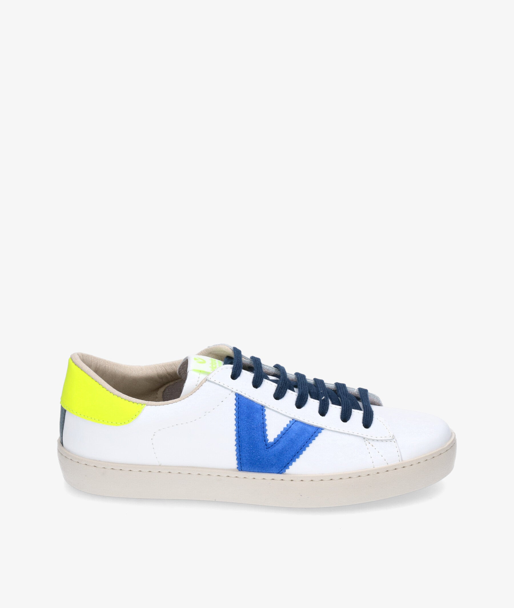 Zapatillas de piel sueve de alta calidad fabricadas en España. Llevan consigo la distinción de una medalla de plata en la certificación LWG (Leather Working Group), que garantiza un proceso de curtición responsable, con un uso eficiente de agua, energía y una gestión de residuos sostenible. Detalles de color en la V del lateral y en la pieza trasera y puntera en seraje. Aceites vegetales en lugar de minerales en la composición de sus suelas reduciendo así el impacto medioambiental.