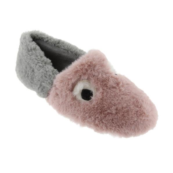 Nuevas zapatillas de estar en casa con diseño de ojos saltones. Fabricadas en España en tejido de pelo corto muy suave y calentito en combinación de colores.