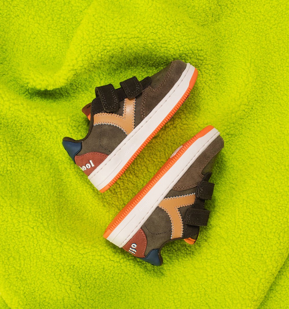 Zapatillas para niños confeccionadas en material efecto piel y piezas en piel de la mejor calidad. Combinan su estilo clásico con divertidos detalles como un smiley en la trasera y texto grabado en el talón. Cierre de dos tiras adherentes, tres tiras a partir de la talla 36, para un ajuste perfecto y suela con patín antideslizante en tonos flúor. Cómodas, ligeras y fáciles de poner.