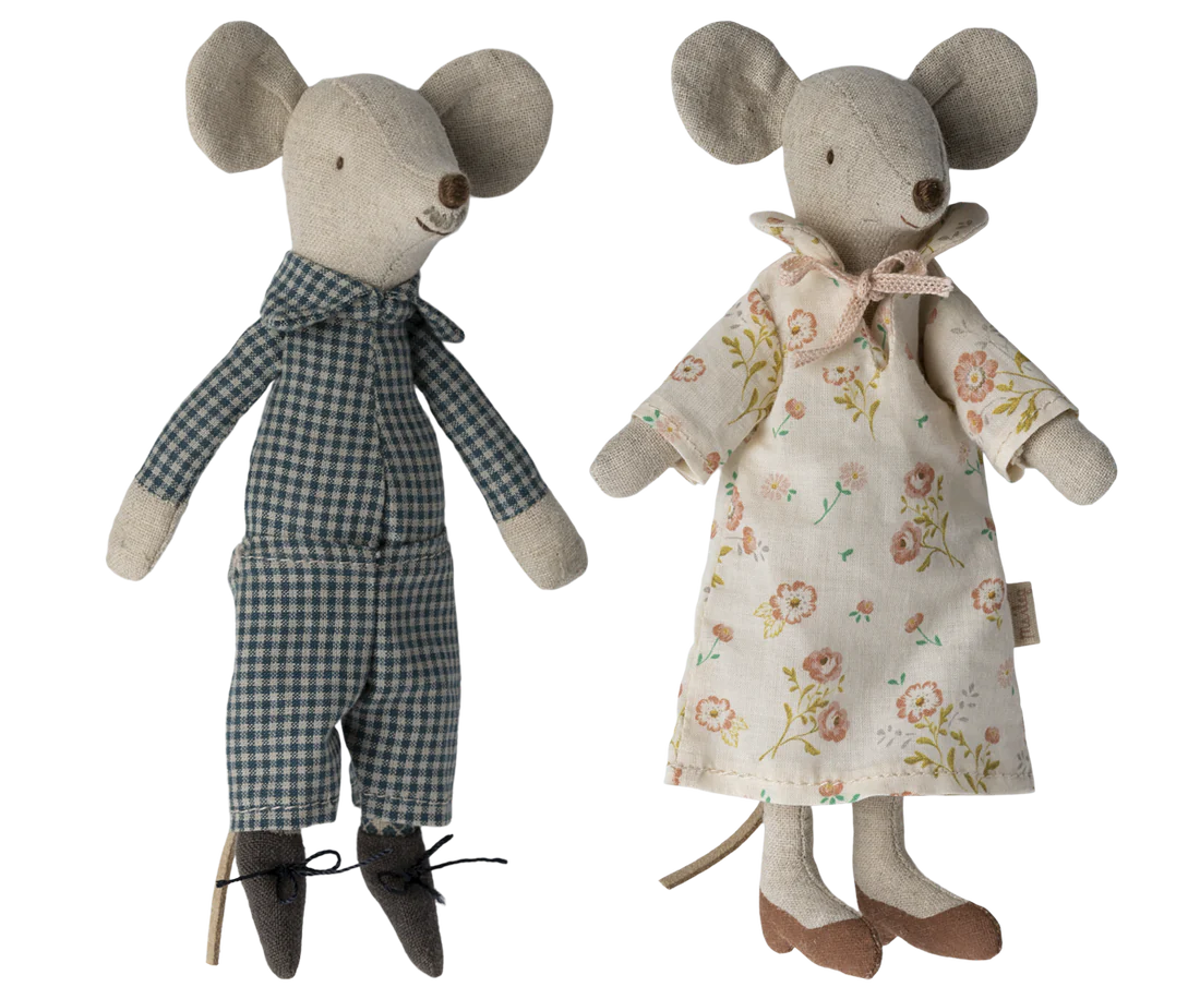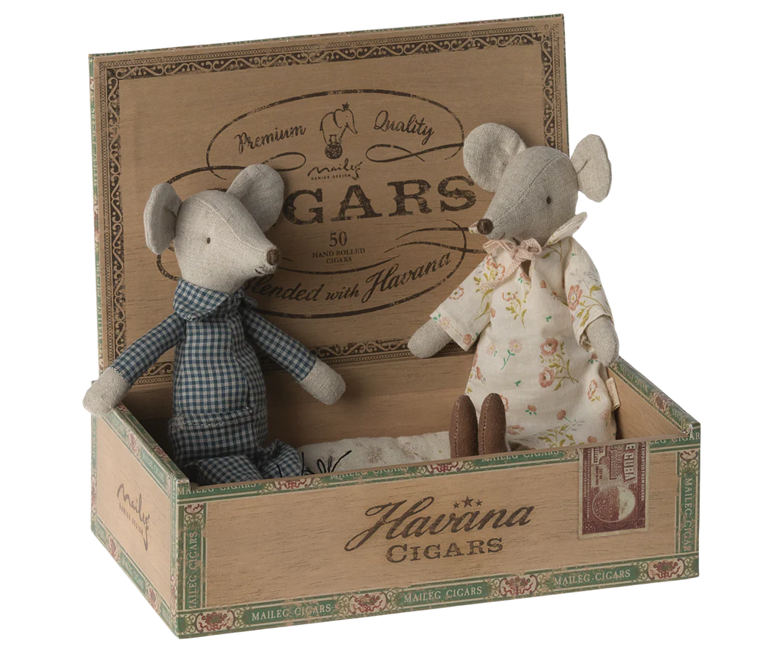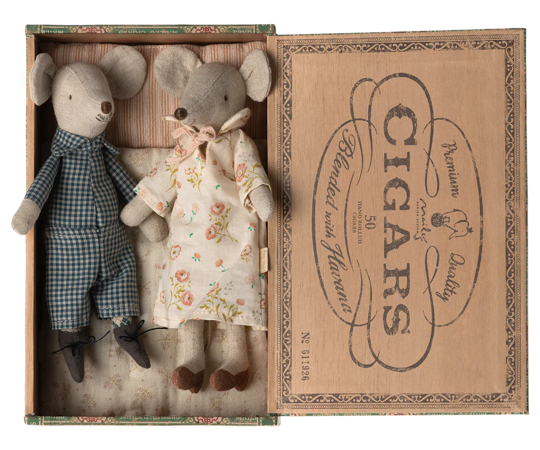 Un clásico ratón de Maileg. La abuela y el abuelo llevan ropa de dormir y bonitos zapatos. La caja de puros es la cama perfecta para un sueño reparador. Amplíe su guardarropa con conjuntos de ropa holgada para crear un juego perfecto.