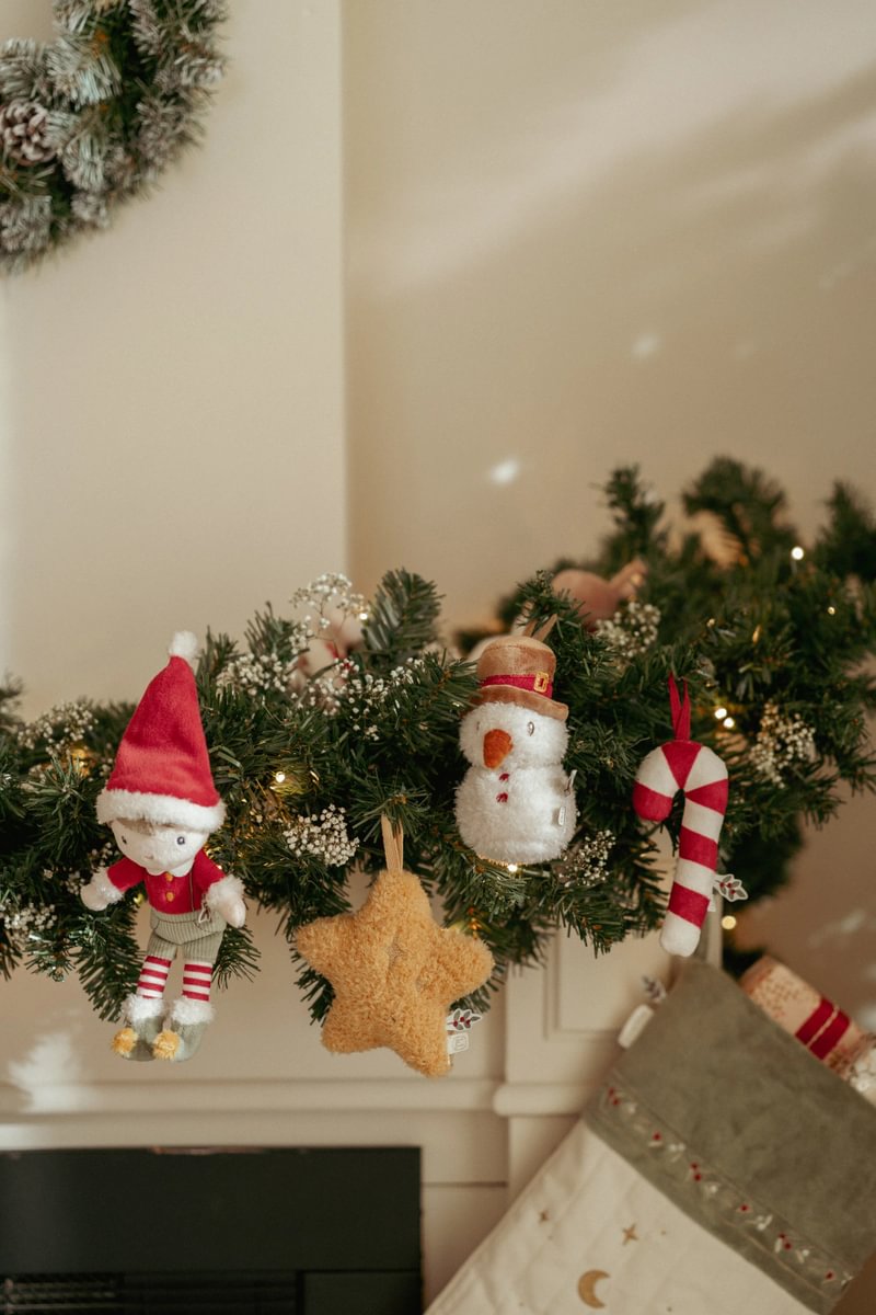¡Tu árbol de navidad quedará ideal con el Set de 4 Adornos Navideños de Peluche de Little Dutch! Dentro de la caja encontrarás cuatro encantadores personajes llenos de espíritu navideño: el muñeco Jim con su gorrito de invierno, un alegre muñeco de nieve, un dulce bastón de caramelo y una radiante estrella.