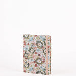 La agenda está cubierta de tela impresa con protección mate y tela contracolada, y cuenta con una goma de 5 mm para su cierre y una cinta marcapáginas.