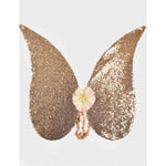 Alas con lentejuelas doradas con tirantes elásticos, revestidos de raso y una estrella dorada rodeada de gasa.