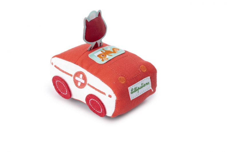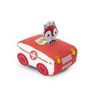 La pobre ardillita se ha roto la pierna. Alicia salta a su ambulancia y llega al rescate. Este vehículo flexible es ideal para las manitas del bebé. ¡Un poquito de marcha atrás y ya está! el vehículo parte de nuevo.