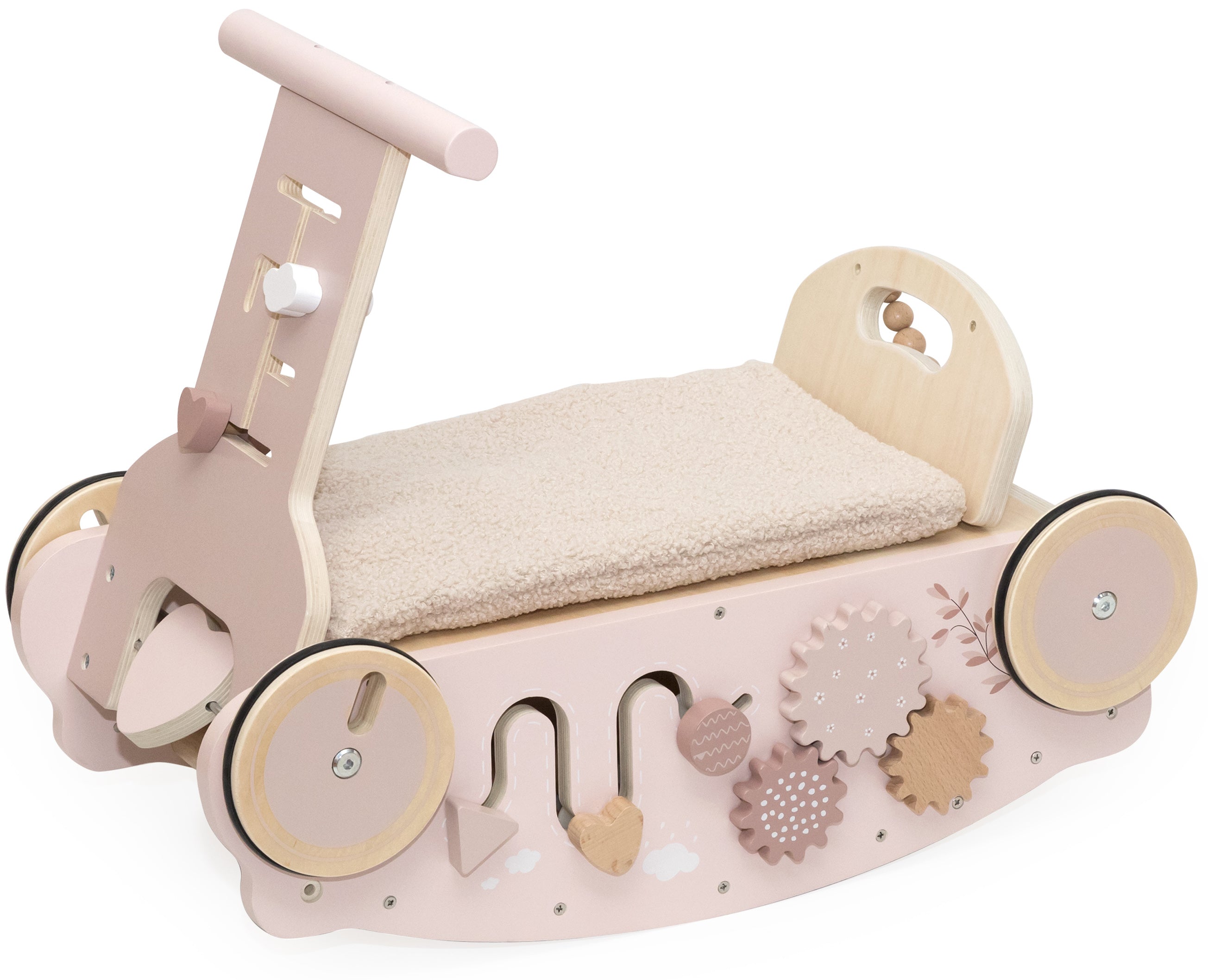 Con el andador de madera 3 en 1 Label Label, aporta versatilidad a tu hogar. Este juguete de madera de bonito diseño combina tres funciones en una: balancín, andador y coche. El andador de madera 3 en 1 Label Label crece con tu hijo y se adapta a cada etapa de su desarrollo. Esto le permite jugar, aprender y moverse con seguridad, ¡desde sus primeros momentos de equilibrio hasta que pueda moverse solo!