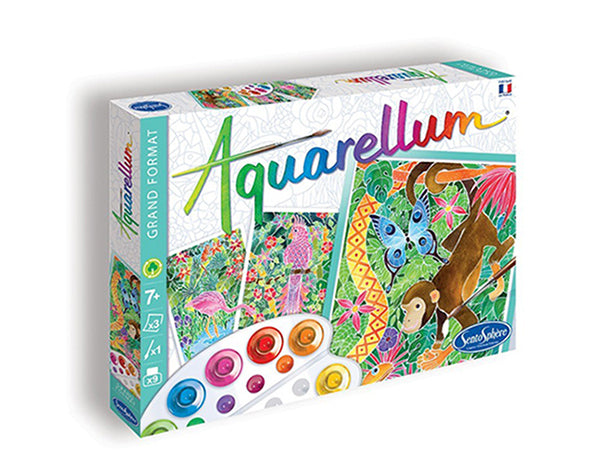 Descubre la técnica Aquarellum y diviértete pintando increíbles animales de la selva amazónica utilizando las 9 tintas de acuarela disponibles en la caja. Ilustraciones tan agradables de pintar como de contemplar, ¡para el placer de grandes y pequeños!