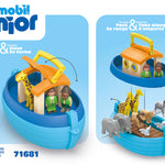 ¡Qué barco tan enorme! Noé y su mujer construyeron un arca, y aquí hay sitio para todos los animales. Con este set, niños y niñas aprenderán la impresionante historia del Arca de Noé y conocerán la diversidad del reino animal jugando y divirtiéndose.