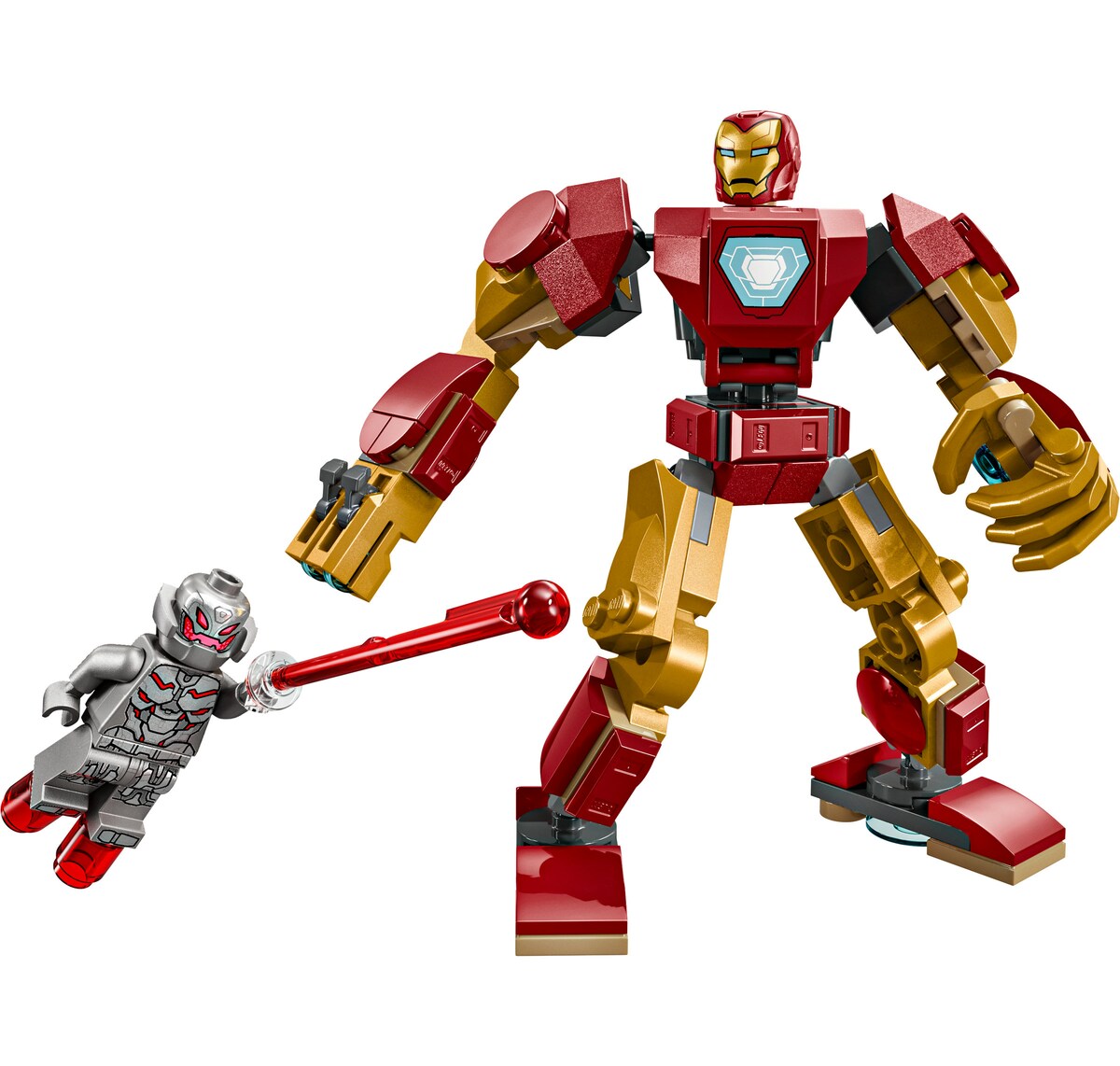 Esta armadura robótica LEGO Marvel viene con 2 minifiguras: Iron Man, con un casco que se abre y una cabeza reversible con expresiones alternativas, y Ultrón, con un elemento en la mano que representa un rayo láser. La armadura robótica construible cuenta con brazos, piernas y dedos móviles, así como con un cañón que dispara en el extremo del brazo derecho. El torso se abre y contiene una cabina con espacio para sentar a la minifigura de Iron Man. Para pasarlo genial también en el mundo digital, los constructores pueden desde acercar y girar versiones 3D de sus modelos hasta seguir sus progresos con la divertida e intuitiva app LEGO Builder.