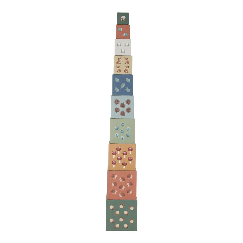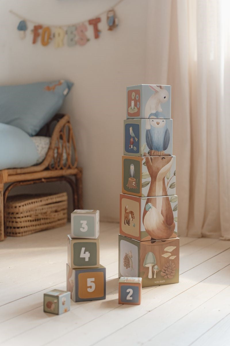 ¡Apila un bloque sobre otro y observa cómo crece la magia de Forest Friends! Puedes crear una torre alta apilando los bloques o colocándolos horizontalmente en el suelo. Explora cuatro escenas encantadas en el interior. Ordena a los simpáticos animales del bosque por tamaño, de grande a pequeño. Ordénalos por números de dos formas diferentes o colecciona las imágenes individuales de los elementos del bosque. Con estos bloques de construcción, los niños aprenderán a contar hasta 10 de forma lúdica. Cada bloque presenta encantadoras ilustraciones de la colección Forest Friends, que incluyen ardillas, zorros, conejos, erizos, búhos y hongos. Los bloques más pequeños se pueden colocar dentro de los más grandes, por lo que son fáciles de ordenar. Los bloques están hechos de cartón resistente, por lo que son muy duraderos. El bloque más pequeño mide 5 cm y el más grande, 14 cm.