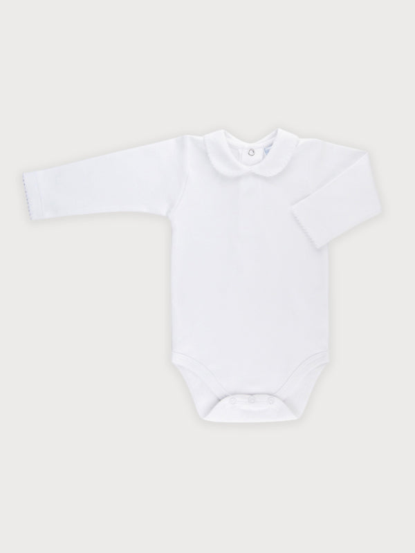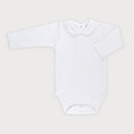 Body Básico Con Cuello Blanco. Cierre con corchetes en la espalda y entre las piernas.