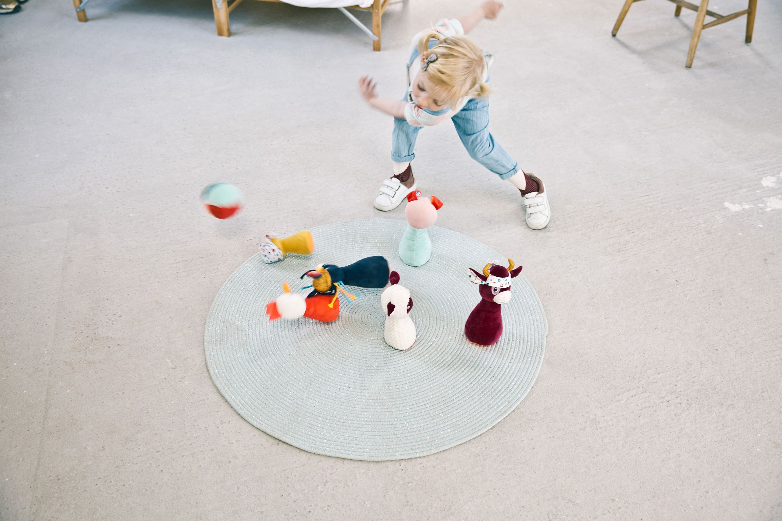 ¡Derríbalos todos de una sola vez! Estos clásicos bolos de muñecos de peluche inspirados en la granja mejoran su coordinación entre la vista y las manos, así como su manejo de la pelota.