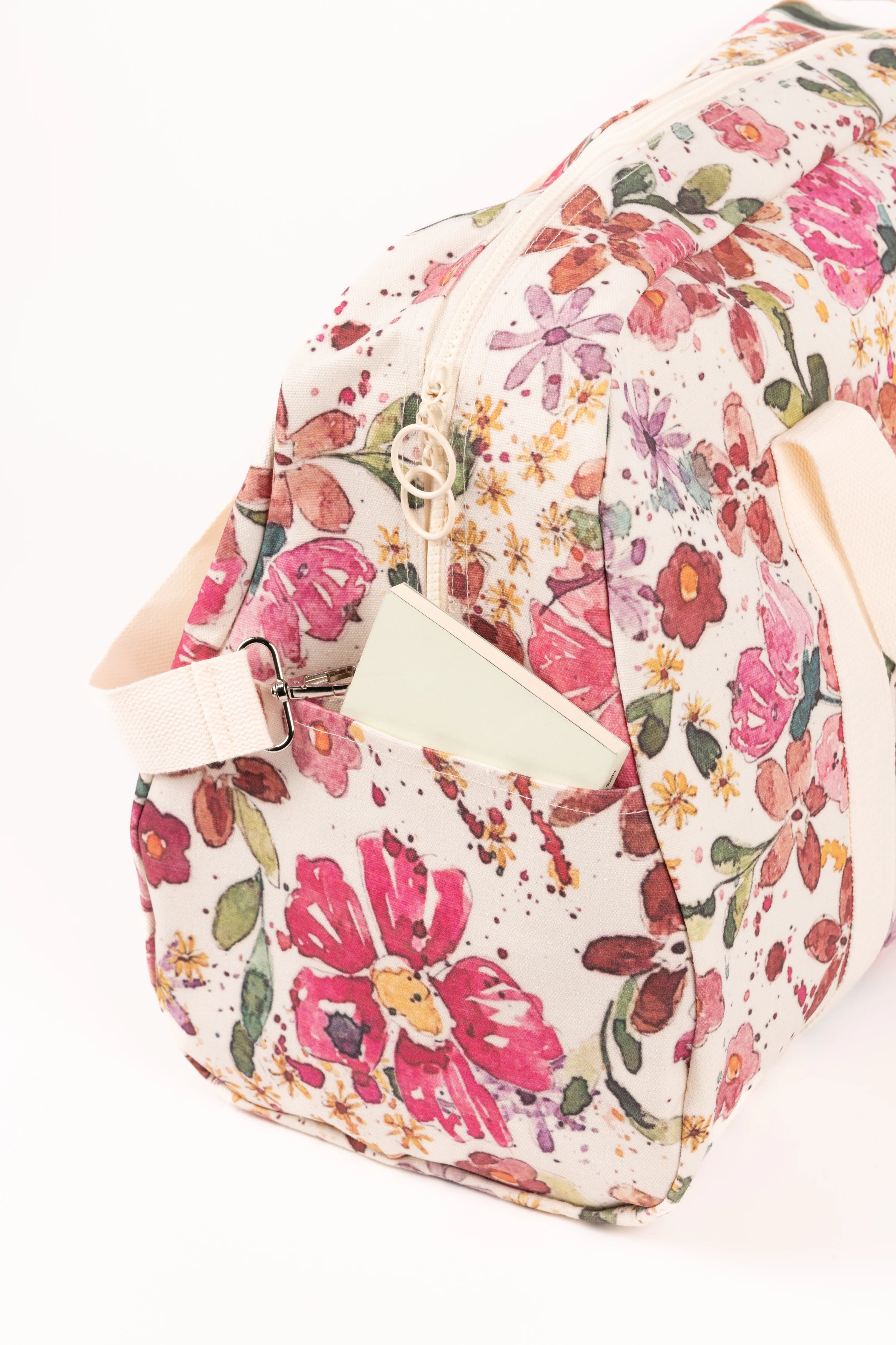 Fabricada en lona de algodón y con 2 cremalleras en tono crudo.