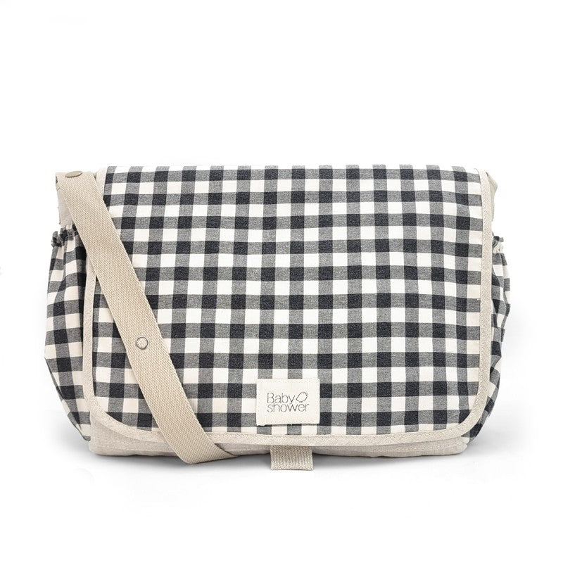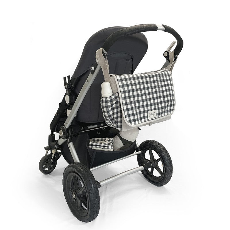 Bolsa para poner los “trastos” de tu bebé a la hora de salir de paseo. Tamaño intermedio entre nuestra Maxibag y la bolsa Babysport. Ideal para sillitas estrechitas como Yoyo o tipo paraguas. Exterior en lino 100% color beige con solapa y bolsillos laterales en estampado de Algodón.