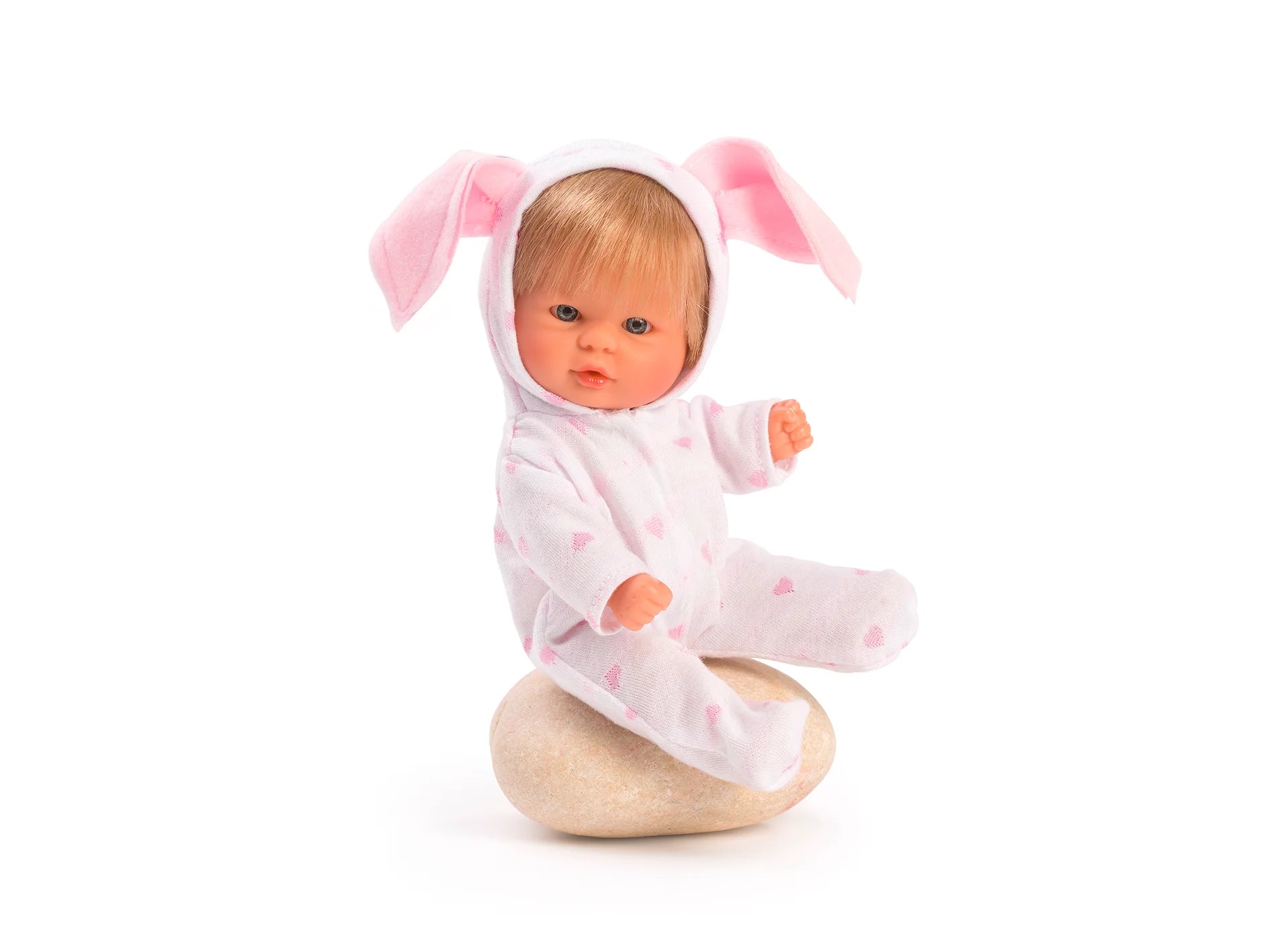 ¡Este Bomboncín con su pijama de conejito con orejas no puede ser más dulce!