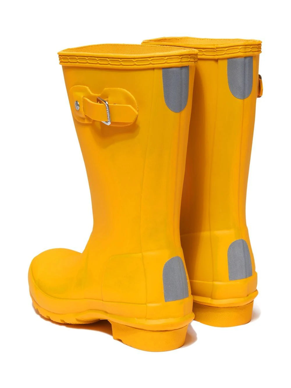 La bota de agua Original para niños es una versión reducida de la icónica bota alta Original y un sueño para los jóvenes exploradores. Esta bota impermeable de color azul marino neutro está elaborada a mano con caucho natural. Diseñadas para vivir aventuras, nuestras botas de agua especiales para niños son sumamente resistentes al desgaste y la abrasión, e incluyen un forro de poliéster para una mayor comodidad. Los parches reflectantes y el dibujo de Hunter Original ofrecen una seguridad añadida que te permite dejar que se enfrenten a los elementos con toda tranquilidad sea cual sea el clima.