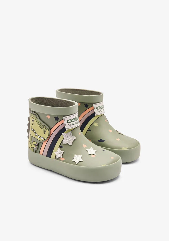Las Botas de Lluvia Dinosaurio Khaki son las botas de agua perfectas para los pequeños aventureros que disfrutan jugando bajo la lluvia. Con un divertido diseño de dinosaurios en un tono khaki, estas botas harán que tu niño se divierta mientras mantiene los pies secos y cómodos.