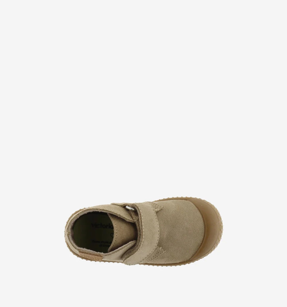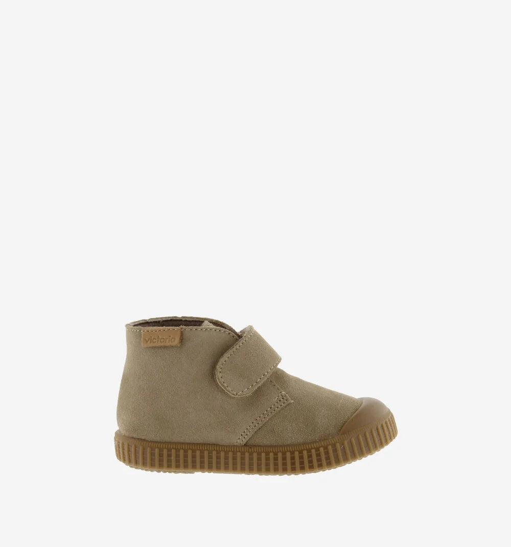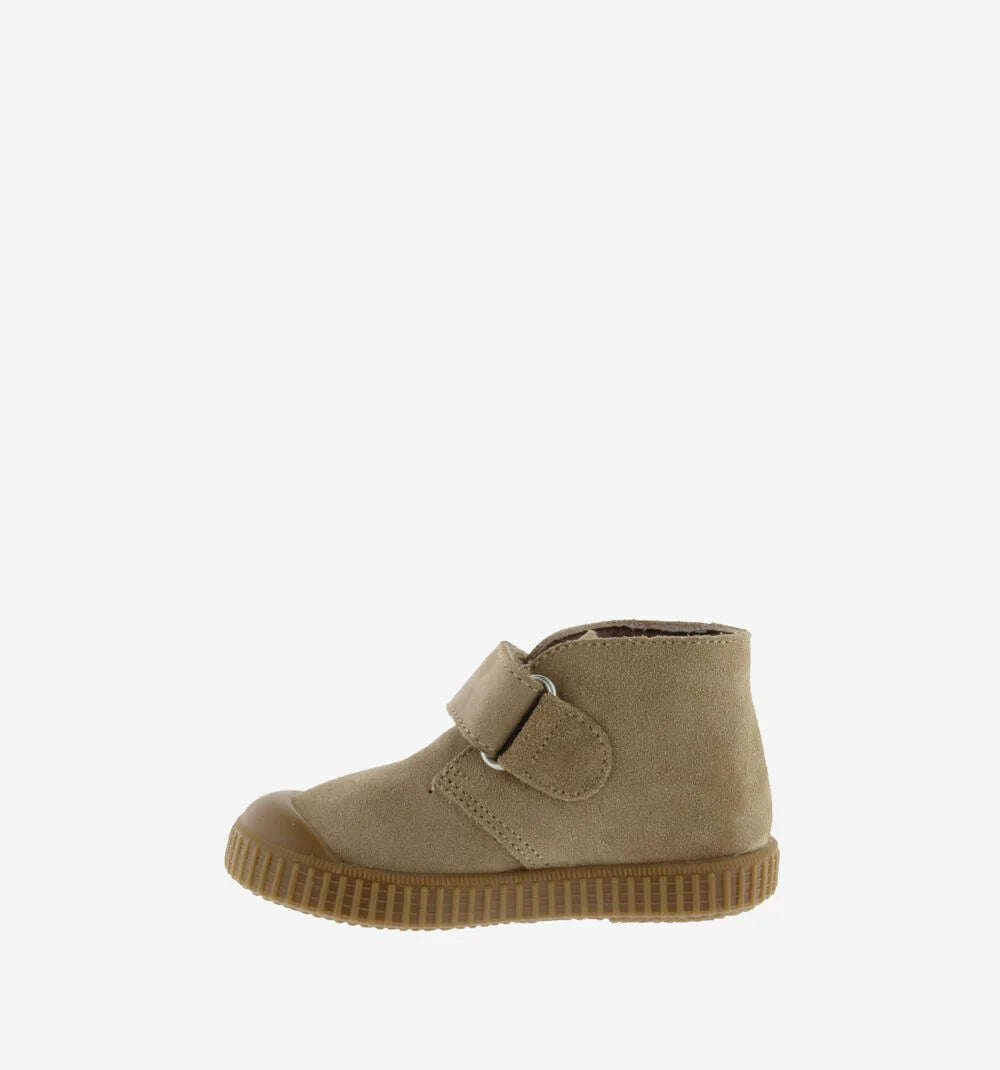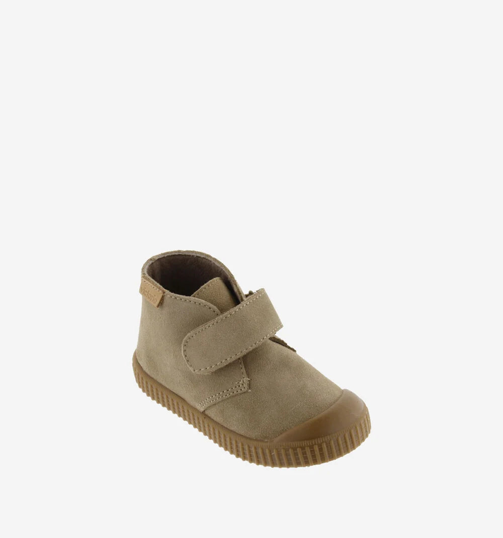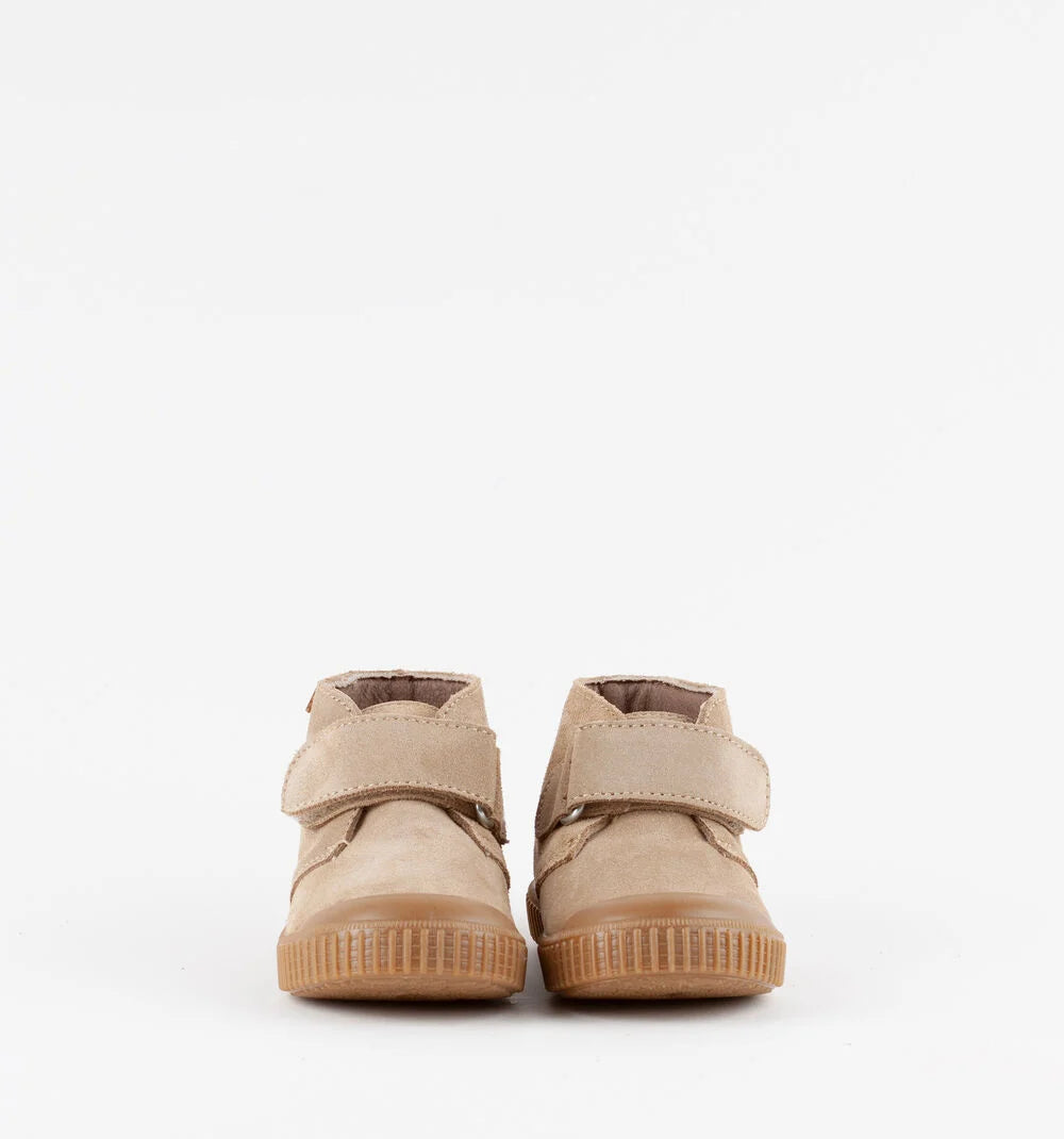 Botines en serraje para niños. Fabricados en España en piel de alta calidad, con medalla de plata en la certificación LWG, que garantiza un uso de agua, energía y gestión de residuos responsable en el proceso de curtición. Cierre mediante una tira adherente que facilita el calce y hace que se ajusten perfectamente al pie. Lleva refuerzo de goma en la puntera que las hace más resistentes.