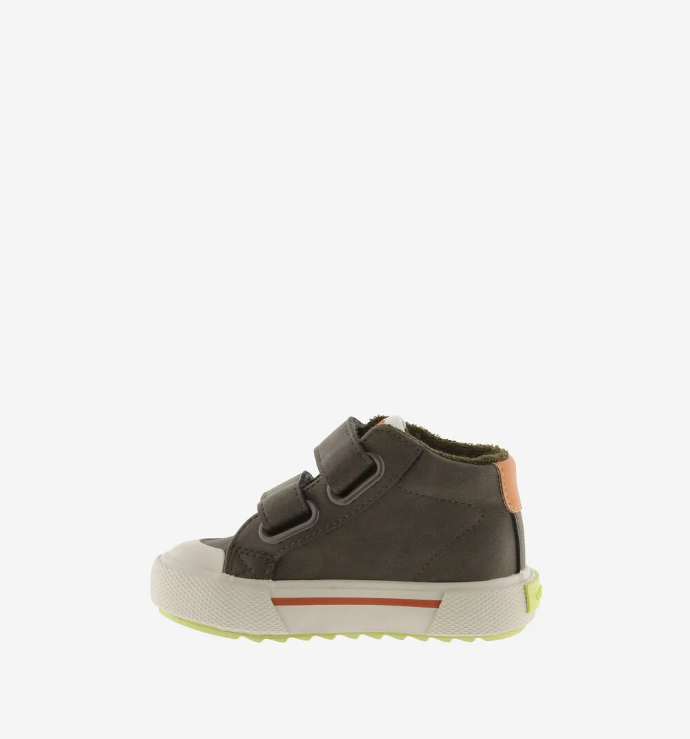 Botines kaki para niños. Fabricados en material efecto piel y logo de Victoria en el lateral en contraste. Suela bicolor con detalles flúor y línea de color al tono con la trasera y lengüeta. Cierre mediante tiras adherentes para favorecer el calce y refuerzo de goma en la puntera que las hace más resistentes. Llevan plantilla de alta densidad para un mayor confort.