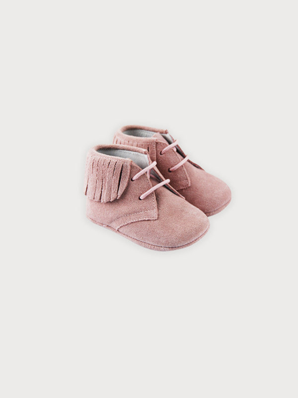 Botita Serraje Flecos Rosa