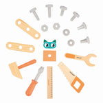 ¡Atención, ha llegado el camión de bricolaje! Este camión 2-en-1 ayudará a su hijo desde los primeros años a aprender a andar, gracias a su cuerda para tirar de él. Además, su lado de construcción permitirá a su hijo desarrollar su destreza y su imaginación. Está compuesto por un remolque que se levanta, 4 accesorios de madera, 10 accesorios de plástico para enroscar y desenroscar una y otra vez, y 5 herramientas para clavar los clavos, medir la superficie de la obra ¡o incluso cortar las tablas! Un pequeño plus: los tornillos tienen muesca para añadir un poco más de jugabilidad y dificultad. Juguete de madera FSC. Juguete de estimulación para tirar para niños a partir de 2 años.
