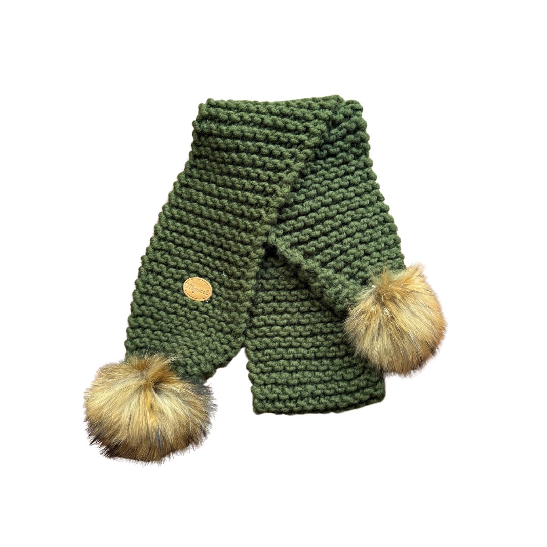 Bufanda de punto con dos pompones de pelo, con un acabado excelente, suave y abrigoso. Un complemento con clase para combinar con todo.