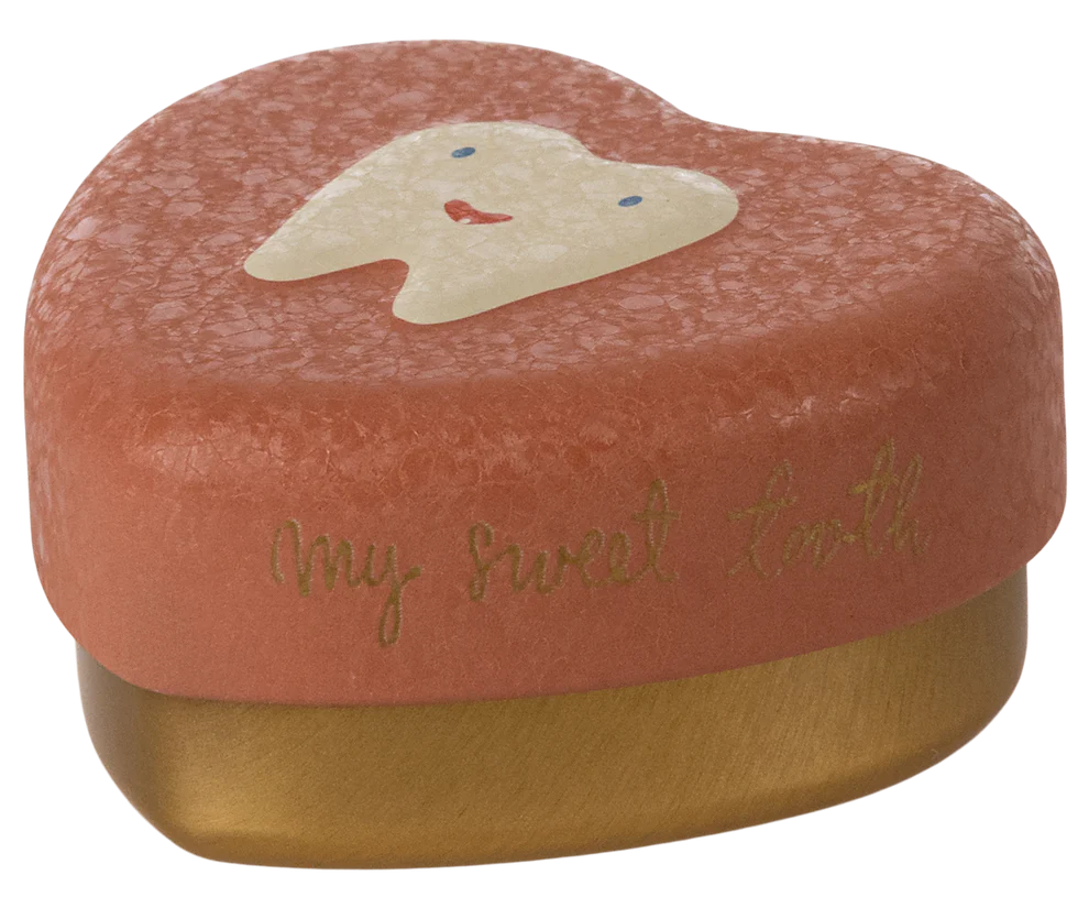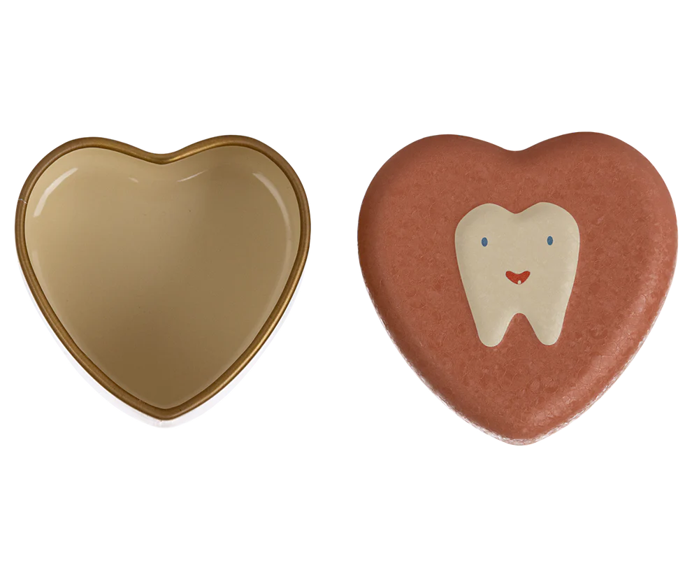 Este corazón de metal es el lugar perfecto para guardar dientes pequeños y garantizar que los recuerdos de la infancia duren. La caja tiene un bonito relieve de dientes y una superficie especial craquelada en la tapa.